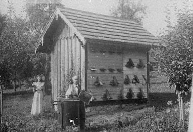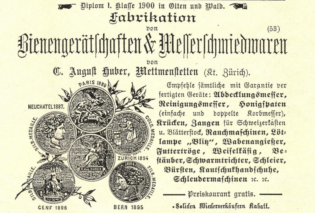 Dieses Bienenhaus wurde 1894 von Johannes Hägi, Zimmermeister erbaut und stand im „Bumgart“ (Baumgartenstrasse) und gehörte zum Gewerbe- und Bauernbetriebes C. August Huber. Der Bauernbetrieb umfasste ein Ladenlokal und eine Werkstatt für die Herstellung von verschiedenen Messerschmiedewaren und Gerätschaften für die Bienenzucht, sowie das Schleifen von Messern.