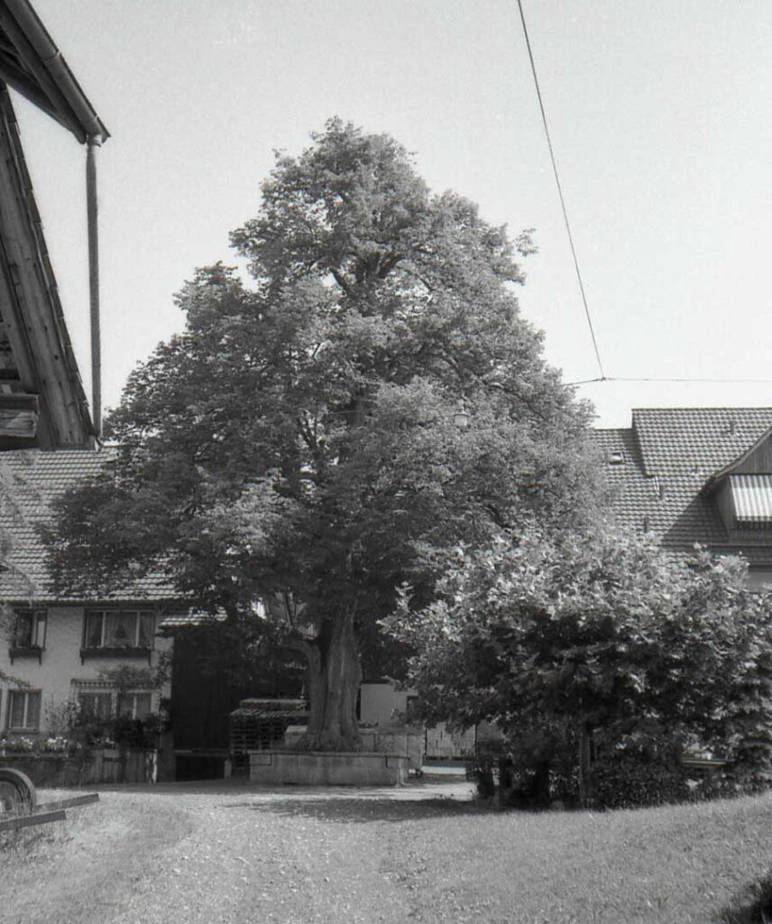 Anmerkung IG Dorfgeschichte: Die Sanierung 1994 half leider nichts, die 250jährige Linde musste 1997 gefällt und durch einen neuen Baum ersetzt werden.