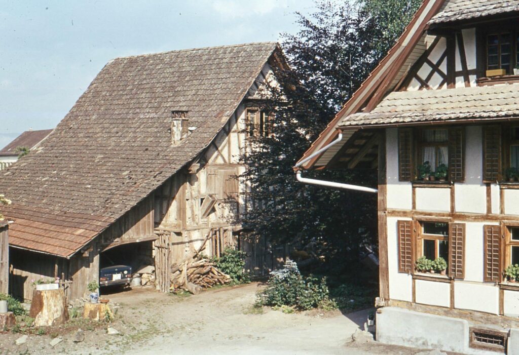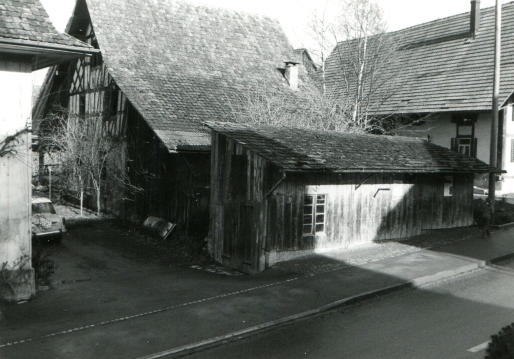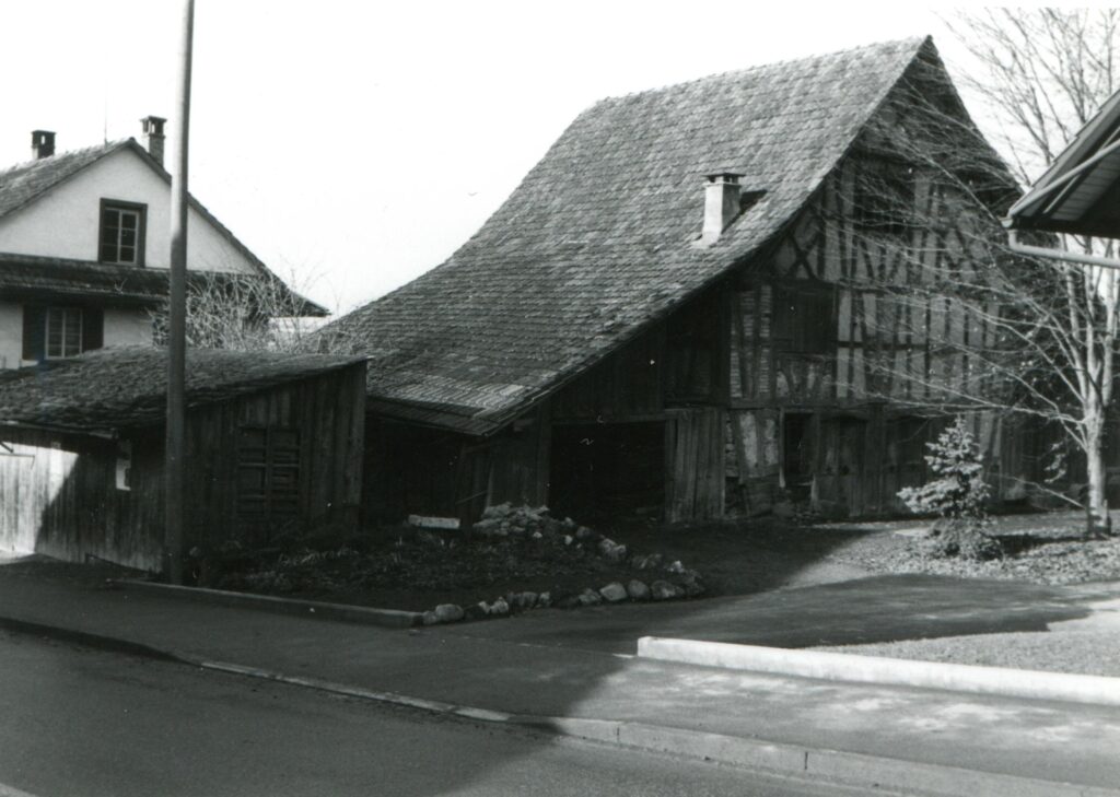 Aus Zürcher Denkmalpflege, 14. Bericht 1995-1996, S 312: Das ehemalige Waschhaus mit Trotte war ein Schutzobjekt von kommunaler Bedeutung. Zudem befand sich das Grundstück im regional geschützten Ortsteil Oberdorf. Im ersten Stock befand sich an der Ostwand ein schwarzes Ornament mit der Inschrift „HHS 1794“. Trotzdem wurde der seit längerer Zeit unbewohnte Riegelbau abgebrochen.